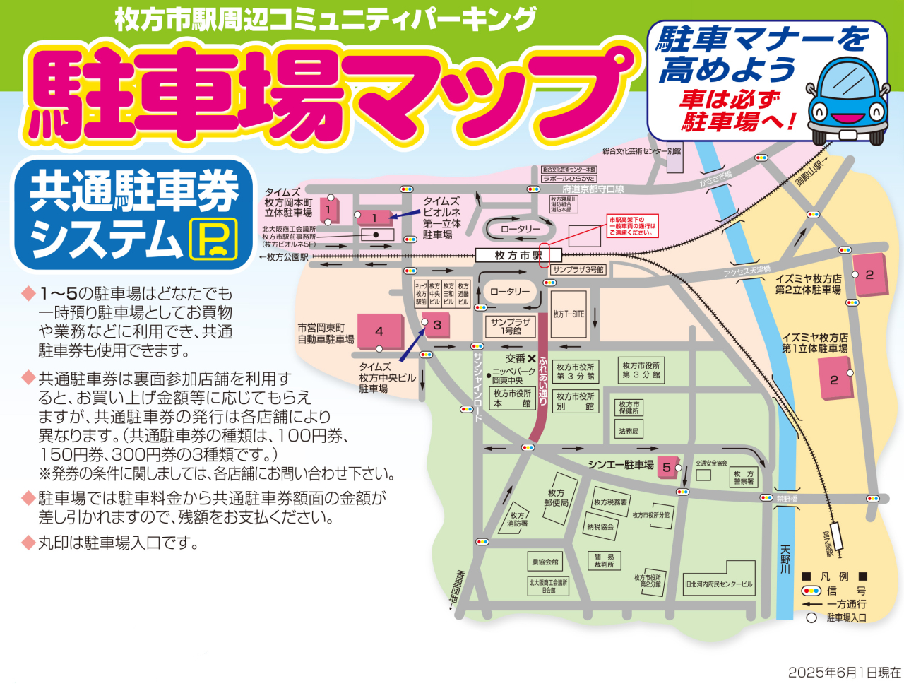 「イズミヤ枚方店第2立体駐車場」につきましては、令和7年10月1日(水)以降ご利用はできなくなりました