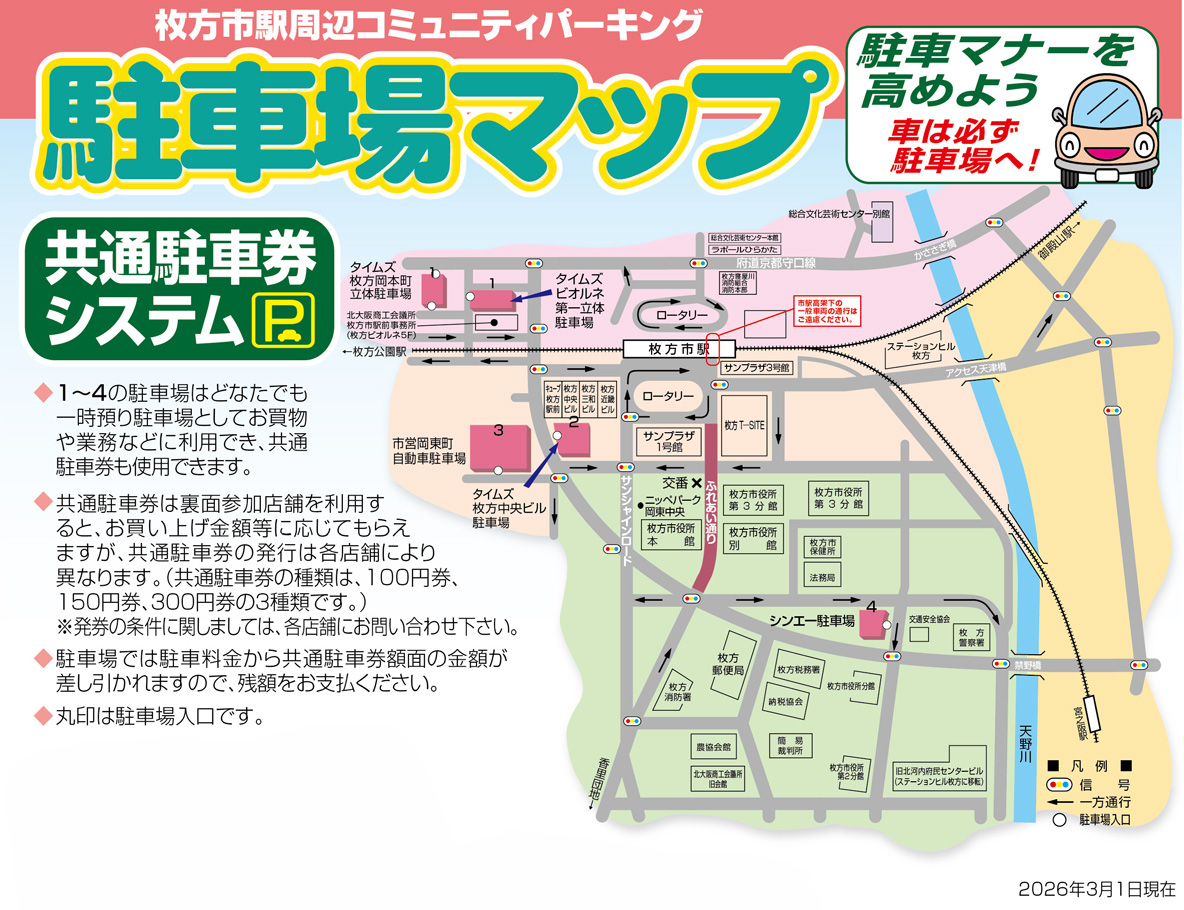 枚方市駅周辺コミュニティパーキング 共通駐車券システム駐車場マップ